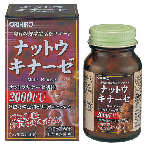 1個あたりの内容量:60粒 【原材料】 大豆油、ゼラチン、納豆菌培養エキス、グリセリン、グリセリン脂肪酸エステル、ミツロウ、レシチン(大豆由来) 【主成分配合量<製品3粒中>】 納豆菌培養エキス100mg、(ナットウキナーゼ活性 2000FU) ※納豆約50g分のナットウキナーゼ活性 【ご利用方法】 ●健康補助食品として1日に3粒程度を目安にお食事時などに水またはお湯とともにお召し上がりください。