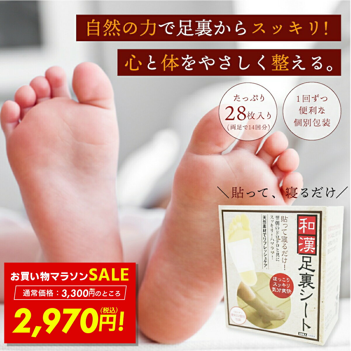 P最大48倍&MAX70%OFF!!お買い物マラソン開催! オススメ商品/ SALE関連ページ 日本古来の和漢の力で健康をサポート!「足裏から癒される、和漢の贅沢ケア」和漢足裏シートは、日本古来の和漢植物を贅沢に配合し、足裏から心と体をやさしく整える健康ケアアイテムです。