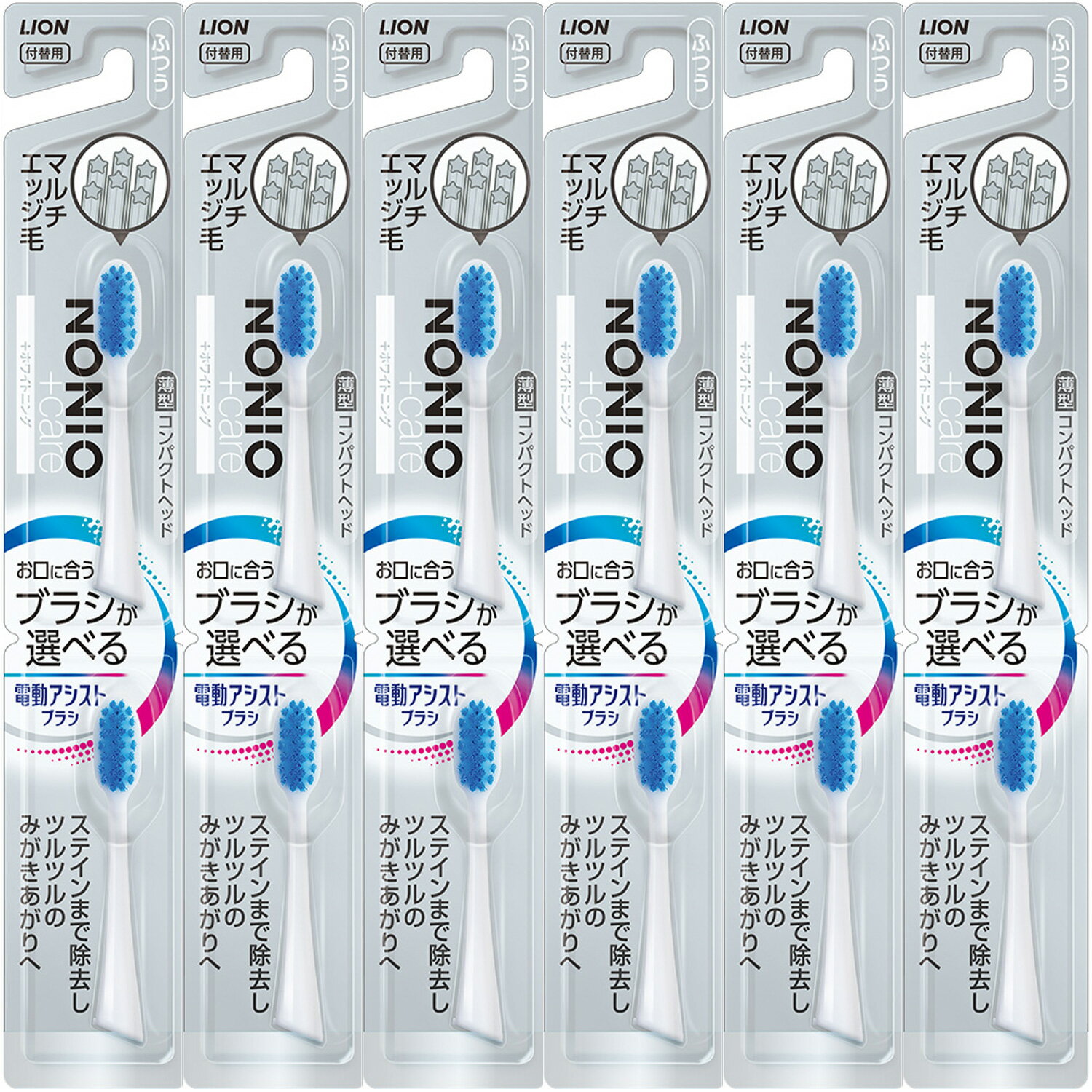 ライオン 電動アシストブラシ 付替 NONIO+ホワイトニング コンパクト ふつう 2本入 ライオン 電動アシストブラシ 付替 NONIO+ホワイトニング コンパクト ふつう 2本入×3個 ライオン 電動アシストブラシ 付替 NONIO+ホワイトニング コンパクト ふつう 2本入×6個 ステインまで除去し、ツルツルのみがきあがりへ ●お口の奥まで届きやすい薄型コンパクトヘッド。
